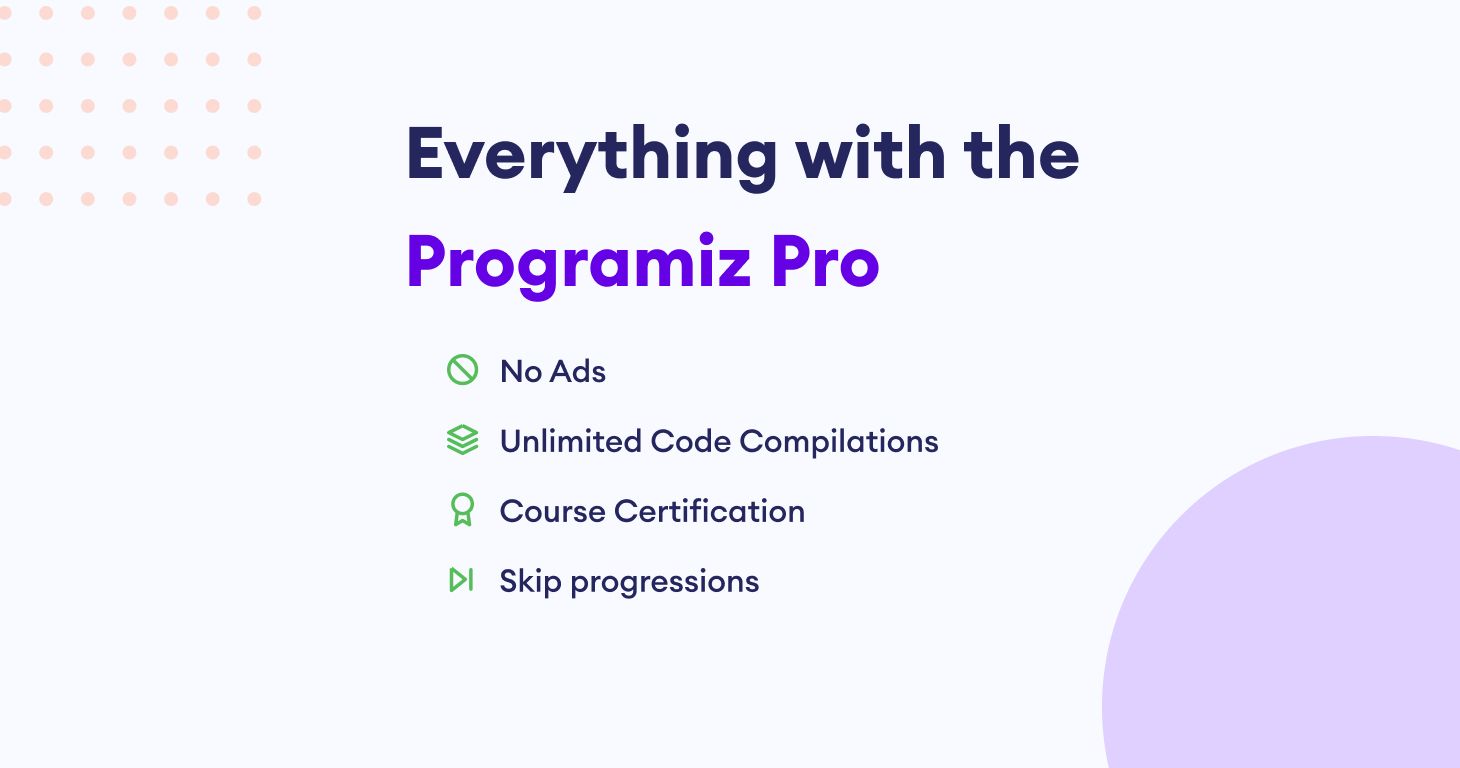Similar to our previous apps, you can get hold of an ad free experience right away with our Programiz Pro monthly/yearly subscription and surf through the app with no interruptions at all!